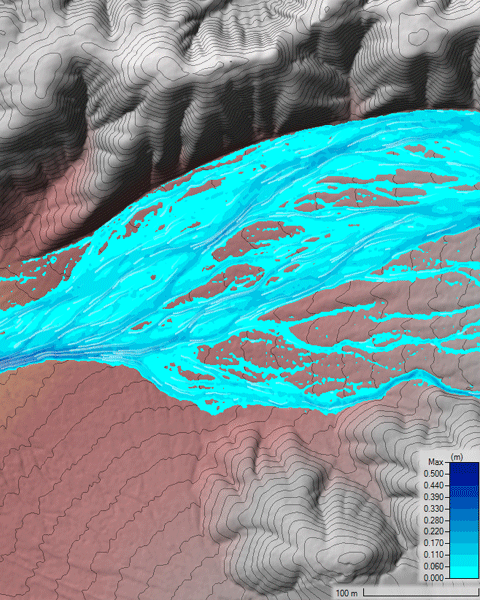 Desarrollo de modelos hidráulicos, diseño de obras hidráulicas, análisis de inundación, estimación de aforo de cauces, estudios de mecánica fluvial, etc.